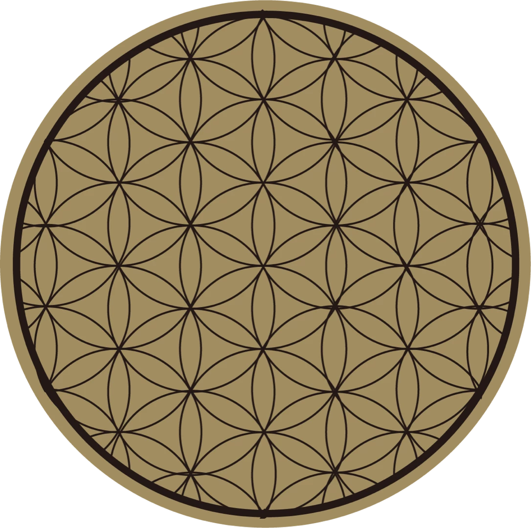 ゴールドの円のレイヤーの上に、グループ化した黒のレイヤーを置いています