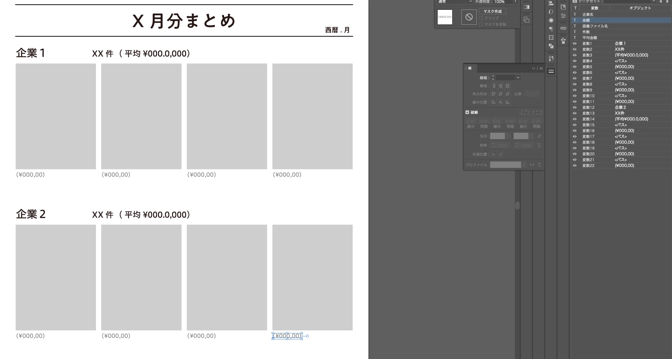 添付のようなレイアウトに写真、テキストを自動で流し込みたく