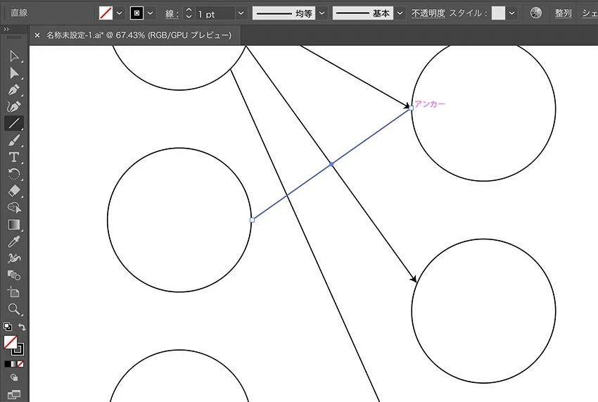 チュートリアルで丸などの図形を等間隔できれいに配置する方法は学びましたが、図形同士をうまく結ぶ良いツールや方法はありますでしょうか?