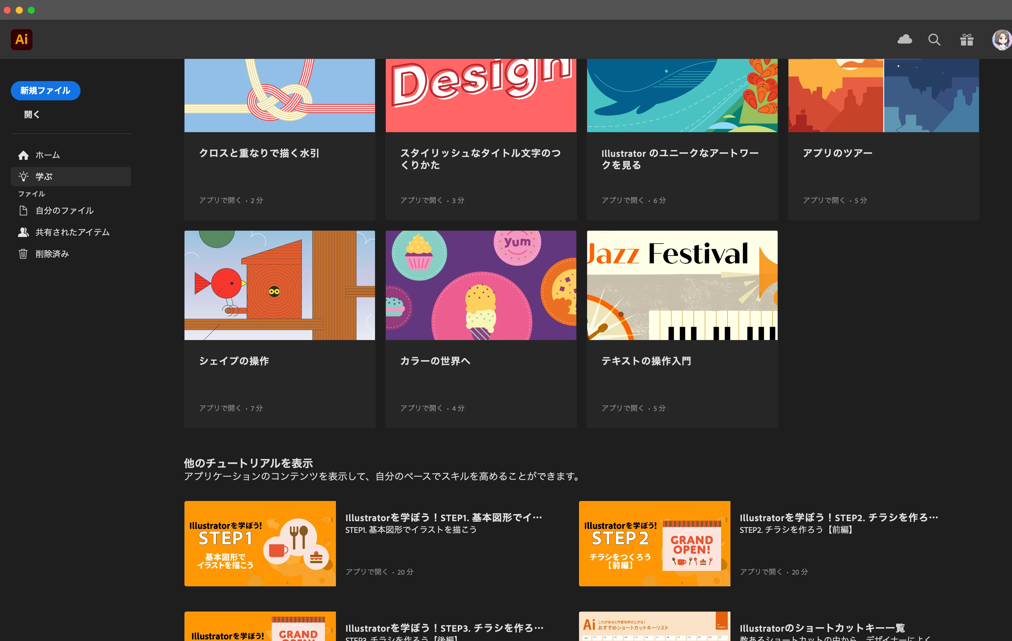 「実践チュートリアル」のアイコンだけ白くて画像が表示されない状態です。
