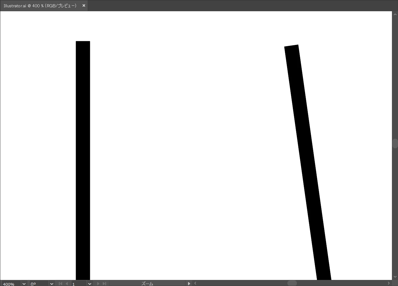 ↓が、私の環境(Win10)のIllustratorで表示した状態(400%拡大・表示>GPU表示・表示>オーバープリントプレビューもピクセルプレビューもOFF)ですが、これぐらいのギザギザ度合いです。Illustratorの表示に関しては、標準でこんな感じかなと思います。