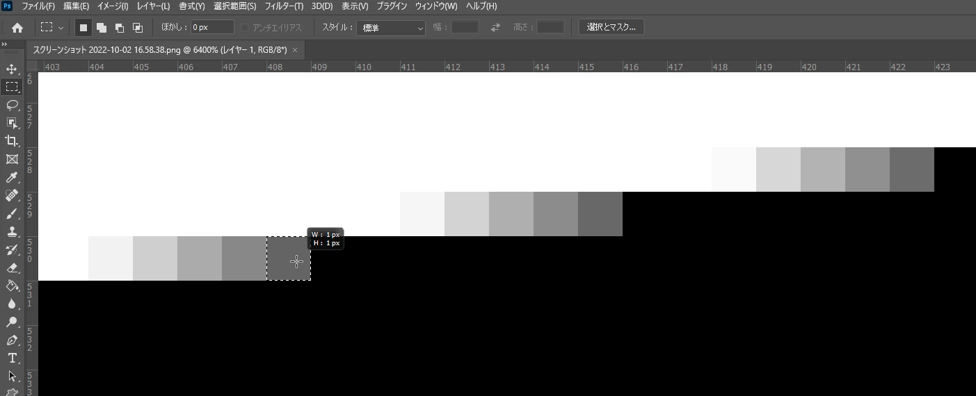 ※白から灰色のグラデーションのピクセルが段差を埋めるように並んでますが、視覚的にがたがたが目立たないようにする処理です。これが無いとシャープにはなりますがガタガタがより目立ちます。