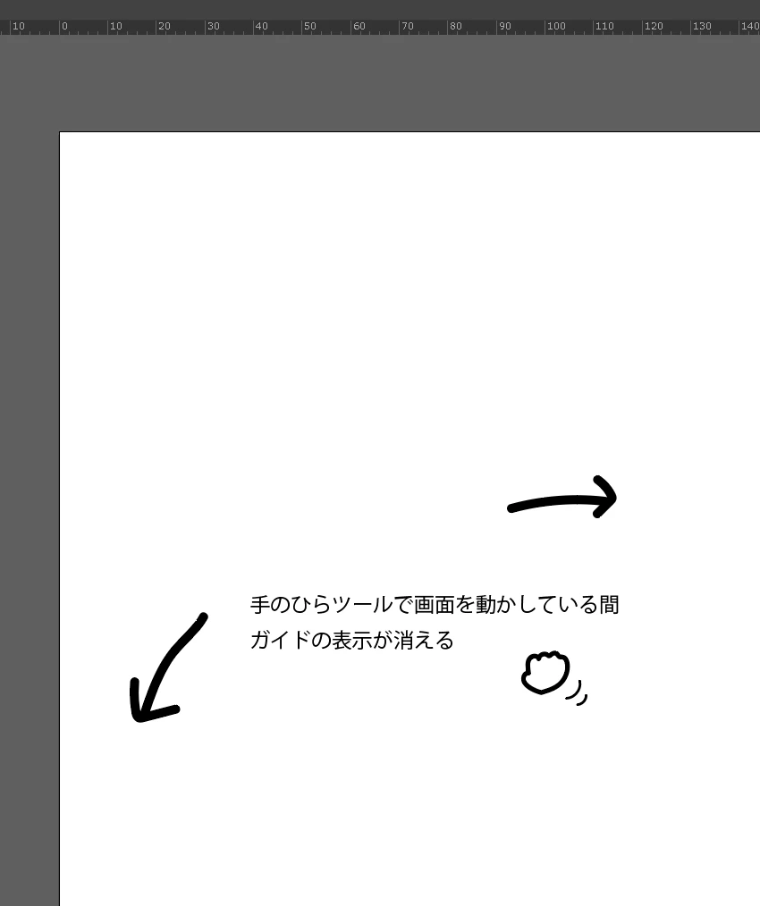 手のひらツールを使用しているとガイドが表示されない
