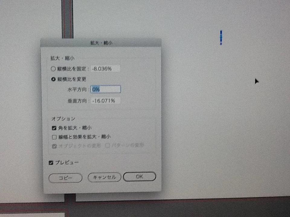 例えば97%に縮小して、別のオブジェクトも同じ数値で縮小しようとすると、添付画像(ボケていてすみません)のように、勝手に数値が変わっています。