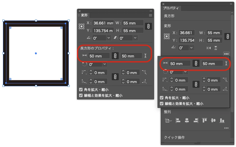 変形パネルの数値入力で拡大or縮小した際、比率固定しているにもかかわらず、縦横比が勝手に変わります。W100mm,H100mmのオブジェクトを縦横どちらかに50mmと数値入力指定した際、W50mm,H51.326mmなどとなってしまいます。大変困っています。なぜでしょうか…。