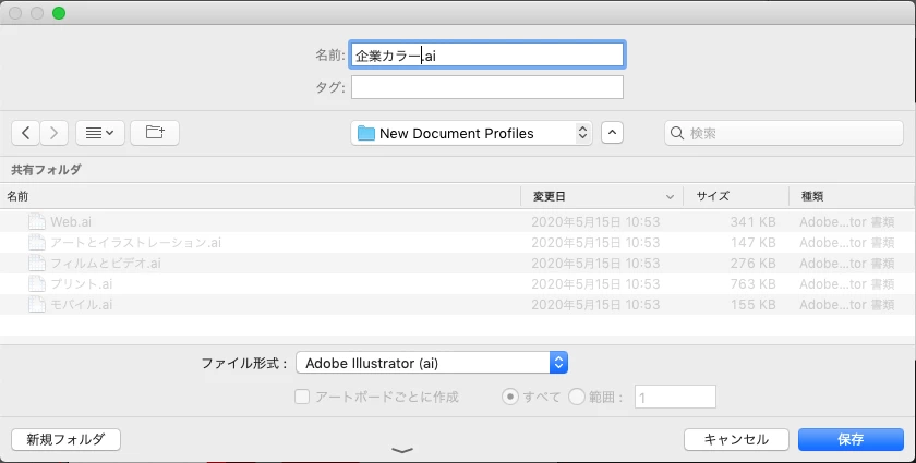 これを所定の場所にai形式で保存します。