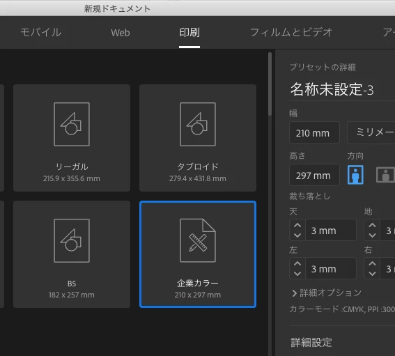ドキュメントプリセットを作成しましょう。