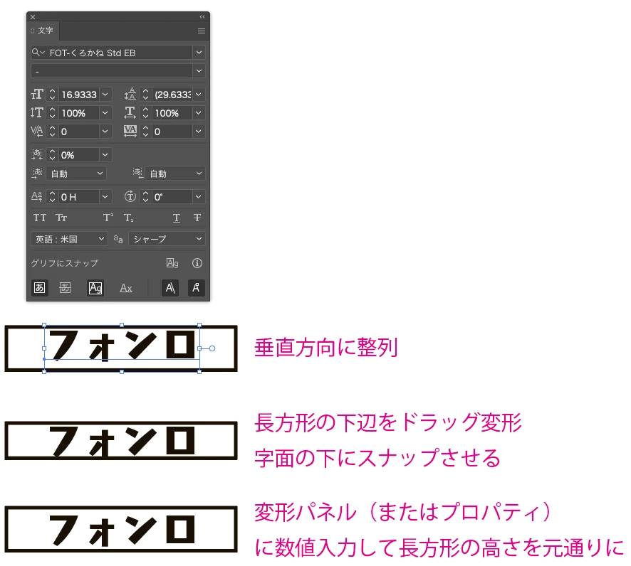 フォントを整列機能を使い、垂直(水平)に揃えようとすると上下にズレる。また左寄せをする場合もズレが出る。