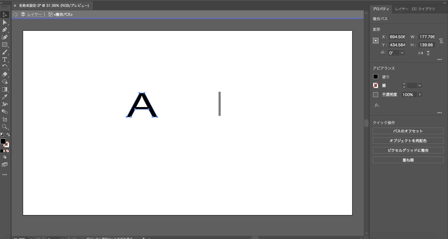 文字に「アウトライン作成する」を選択しても部分事のサイズが調整できない(アウトライン化しても文字が細かく区切られません)