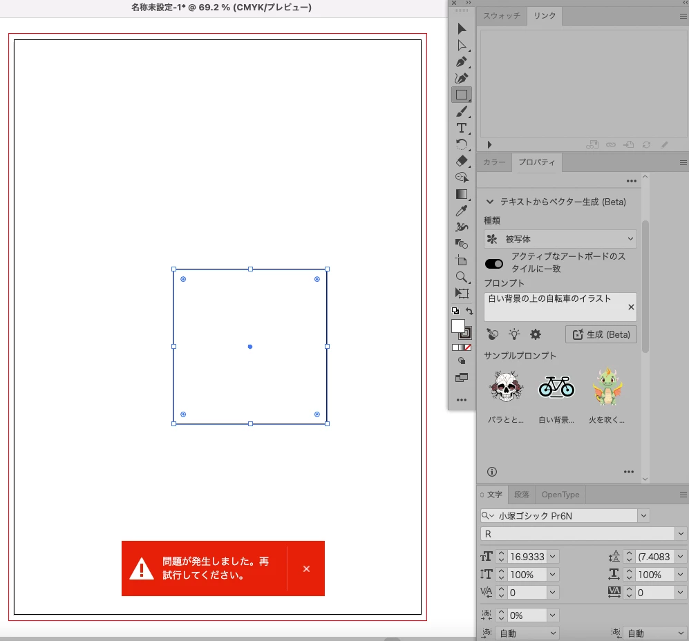 AaikendoIt!ParticipantForum|Forum|2 years agoNovember 16, 2023質問新機能のvector生成で問題発生で生成されないForum|Forum|2 years agoNovember 16, 2023返信数 4.1036 ビュー生成ボタン押してステータスバーは最後の方まで進むものの、最後に「問題が発生しました〜」メッセージで何も生成されません。設定変えて何度やっても同じです。 [iMacの概要のスクリーンショットを少し加工しました:モデレータ]Mac