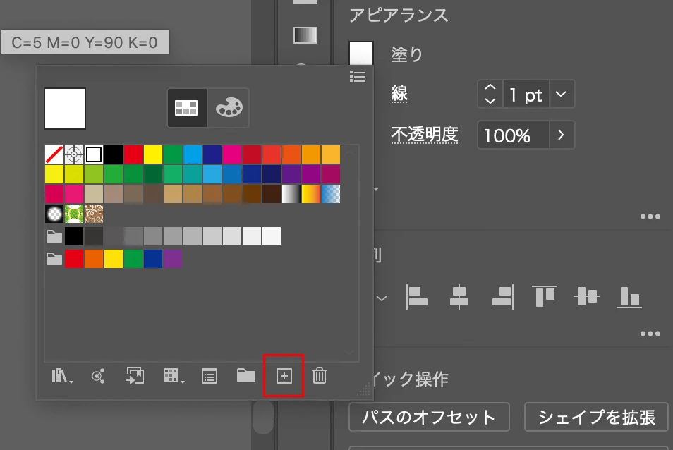 こちらで新規スウォッチを作成することもできます(赤枠部分のボタン)。