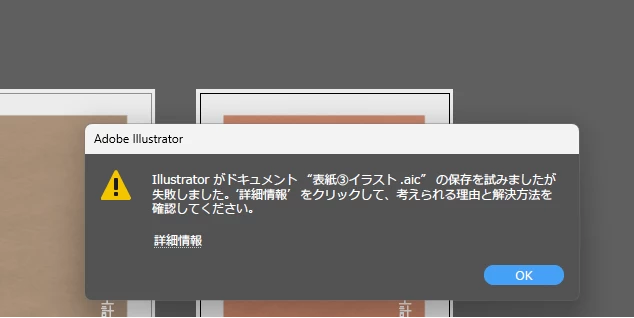 『Illustratorでファイル「○○○」の保存を試みましたが失敗しました。「さらに詳しく」をクリックして、ファイルを保存するために別の方法を試して下さい。』表示が出て、何をしても閉じてくれず毎回PCを強制終了する必要があります。