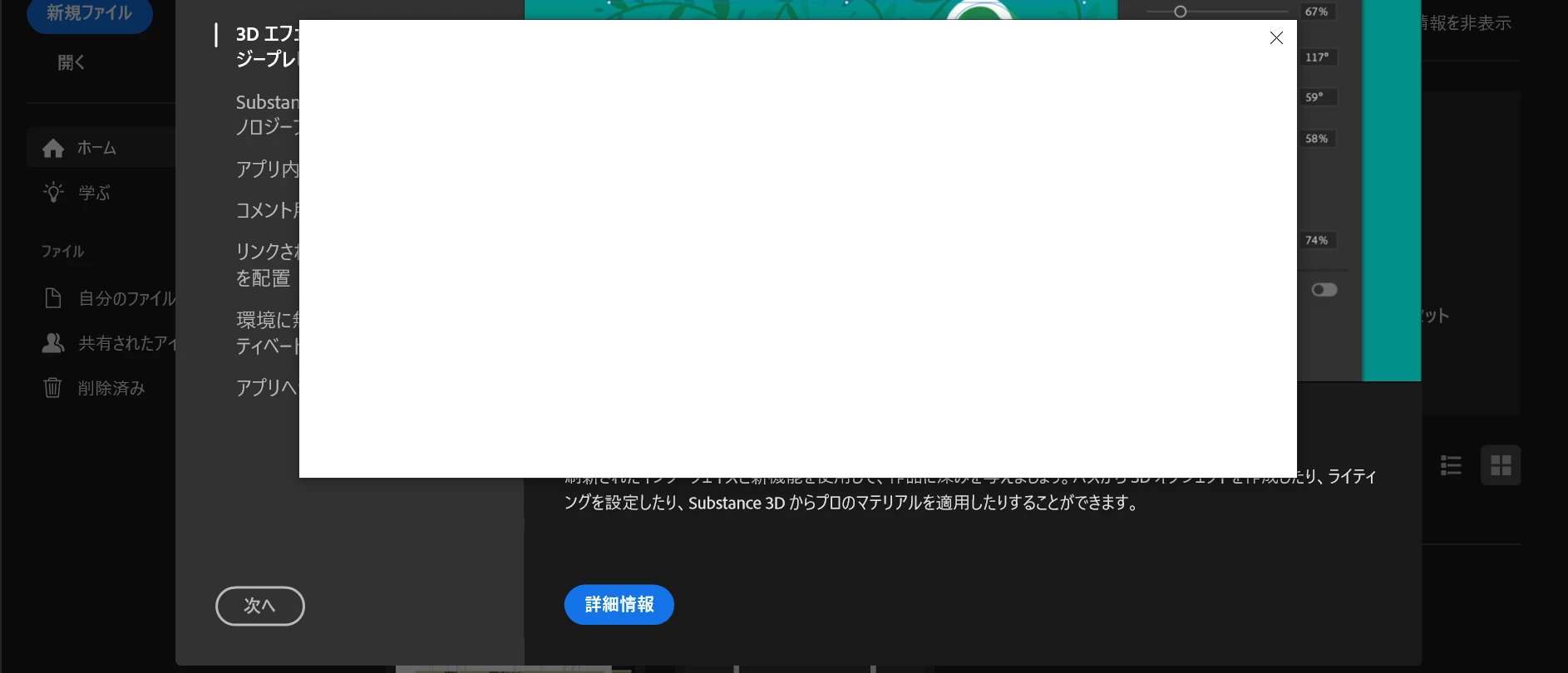 白いスペースには何も書かれておらず右上に×が表示されてるだけです。その×を押すとillustratorの表示も消えてしまって困ってます。
