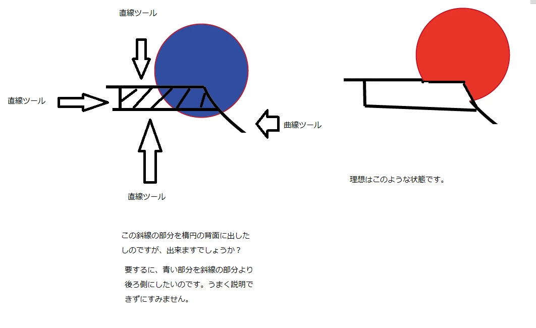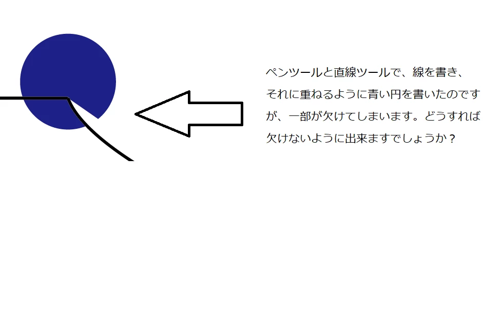 直線ツールと、ペンツールの上に楕円を描いたのですが、一部が欠けてしまいます。どうすればよいのでしょうか?