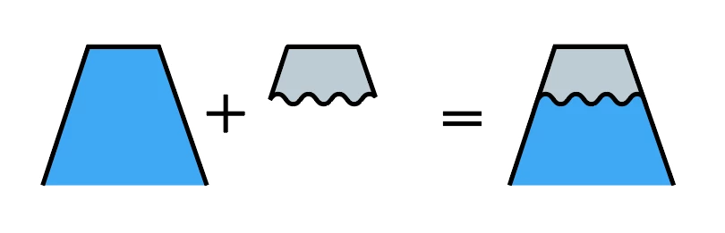 例えば上の図版は奥部分と手前部分、ふたつの図形を組み合わせて作るのが一般的です。