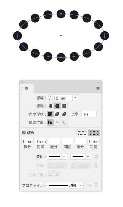楕円の線上に○を等間隔で一周配置する方法を教えて下さい!