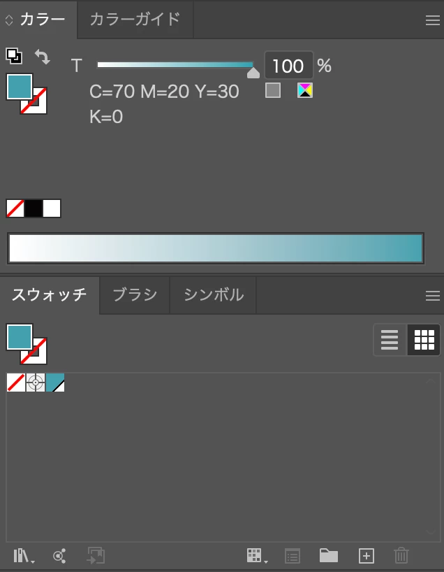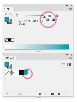 プロセスのスウォッチなのか、特色のスウォッチなのかはスウォッチパネル上で判断できます。