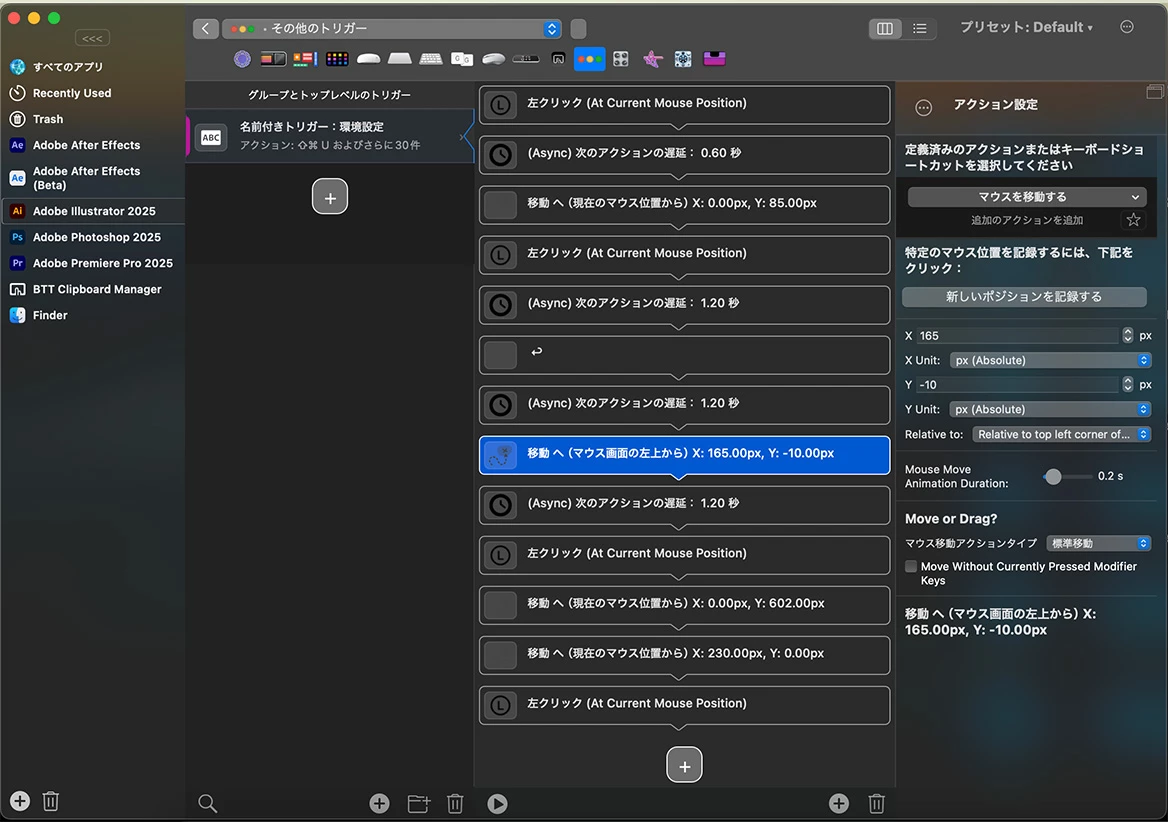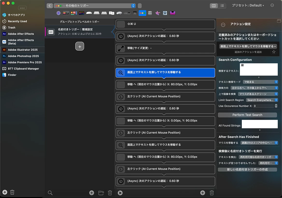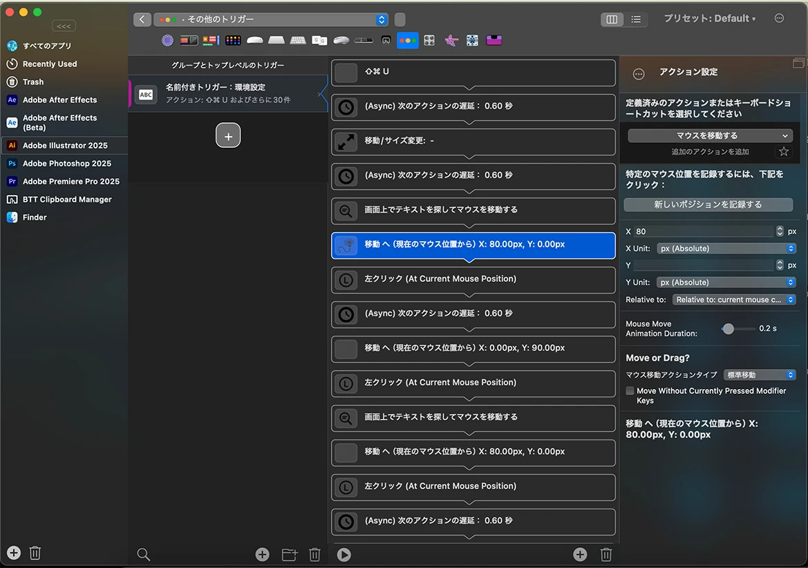 この設定を実現するために、アクションやスクリプトを使用する方法についてアドバイスをお願いします。