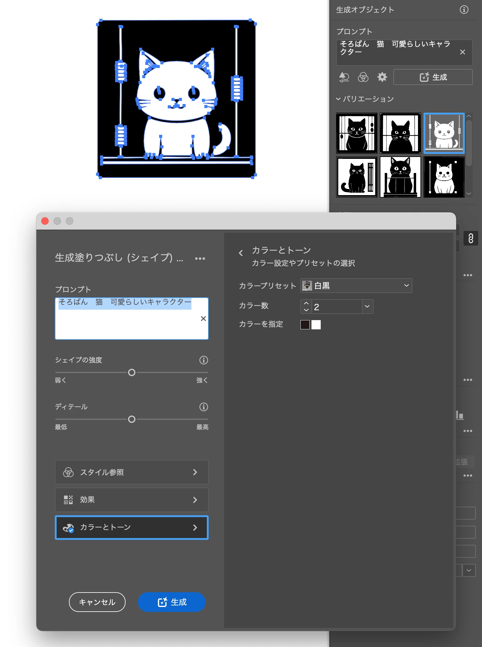 生成ベクター(Bate)で白黒のもののみ生成したい