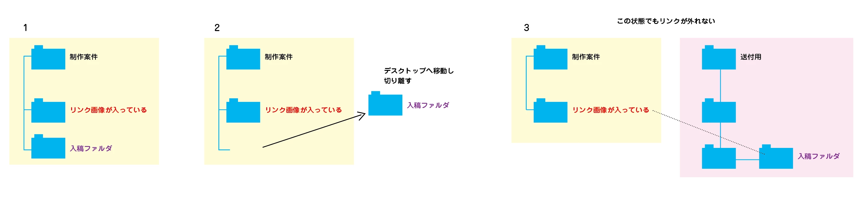 その図の場合、入稿フォルダにIllustratorファイルがあり、リンク画像が元の場所のままですから、