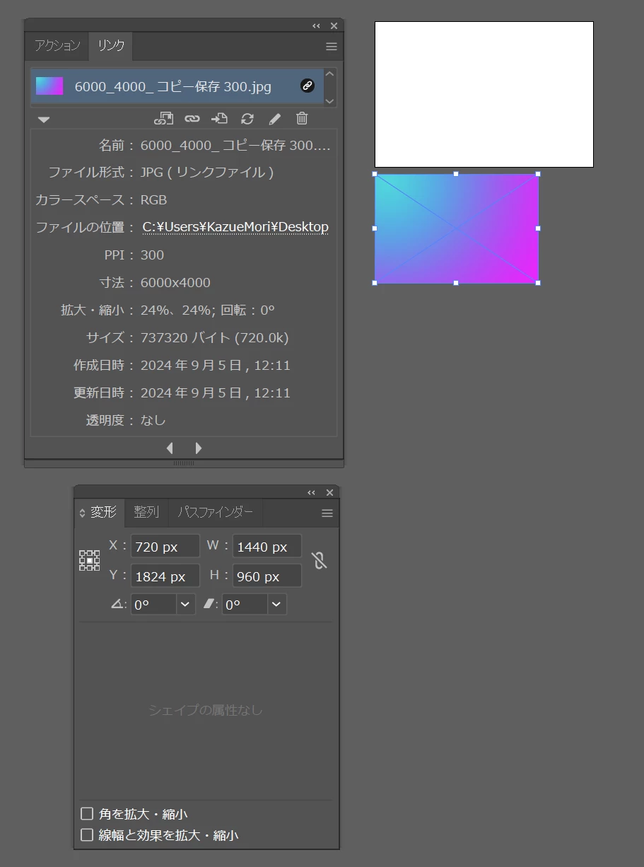 1 ÷ 画像解像度 × 72 ということで、今回は 24%縮小された形となります。
