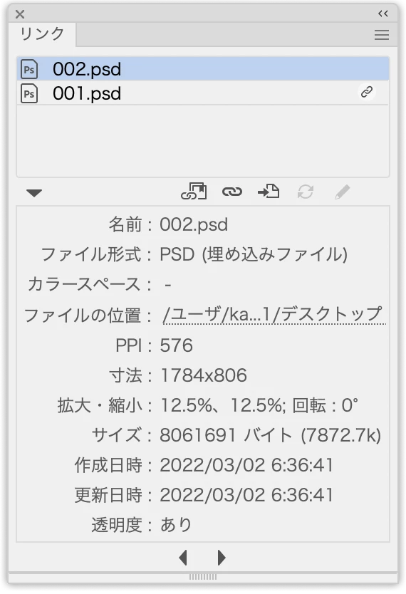 画像の埋め込みをしようとリンクパレットを開き、画像を選択してハンバーガーメニューを開いても、「画像を埋め込み」の選択肢がなく「埋め込みを解除」の選択肢しか出てきません。ですが画像が埋め込まれているマークも出ておらず途方に暮れております。