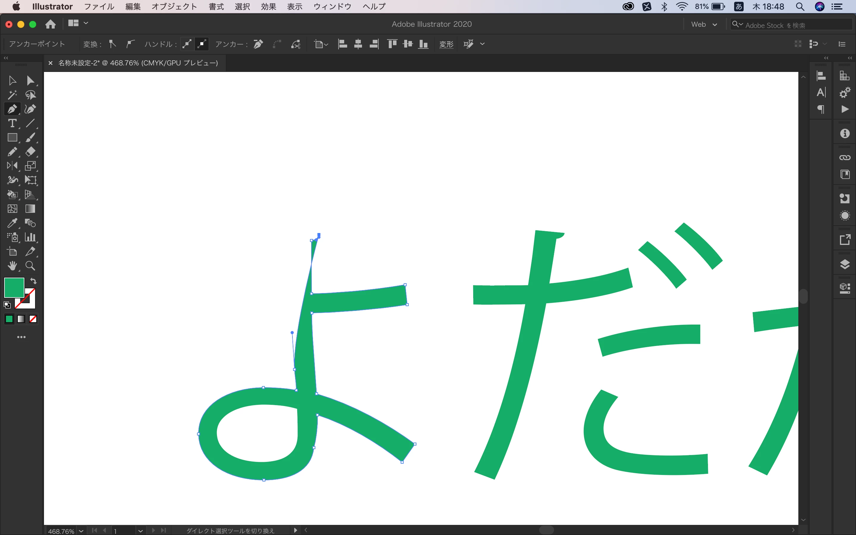 ダイレクトツールでアンカーポイントを選択とありますがこれはアウトライン化してからの処理でいいですか?