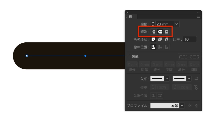 ペンツールや直線ツールで作った直線の端の部分に丸みをつけたいのですがその方法がわかりません