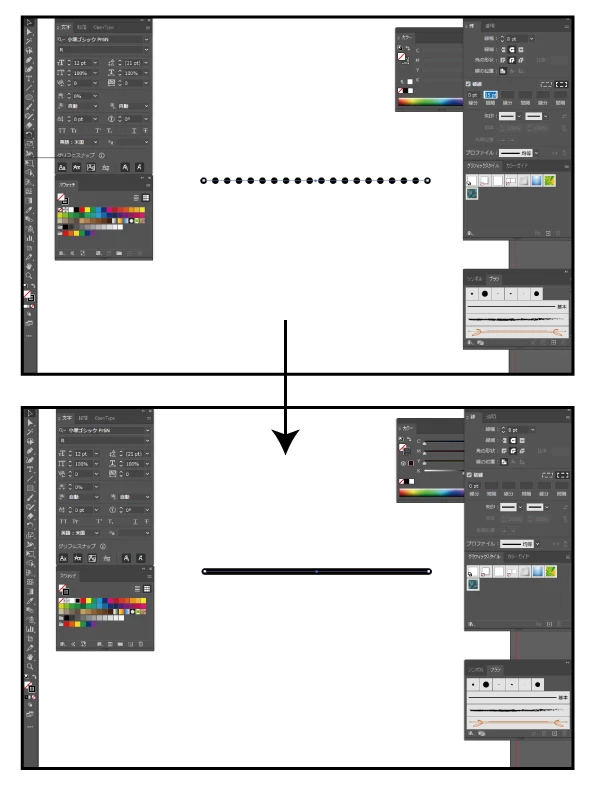 エンターを押すと破線が実線に戻ってしまいます。
