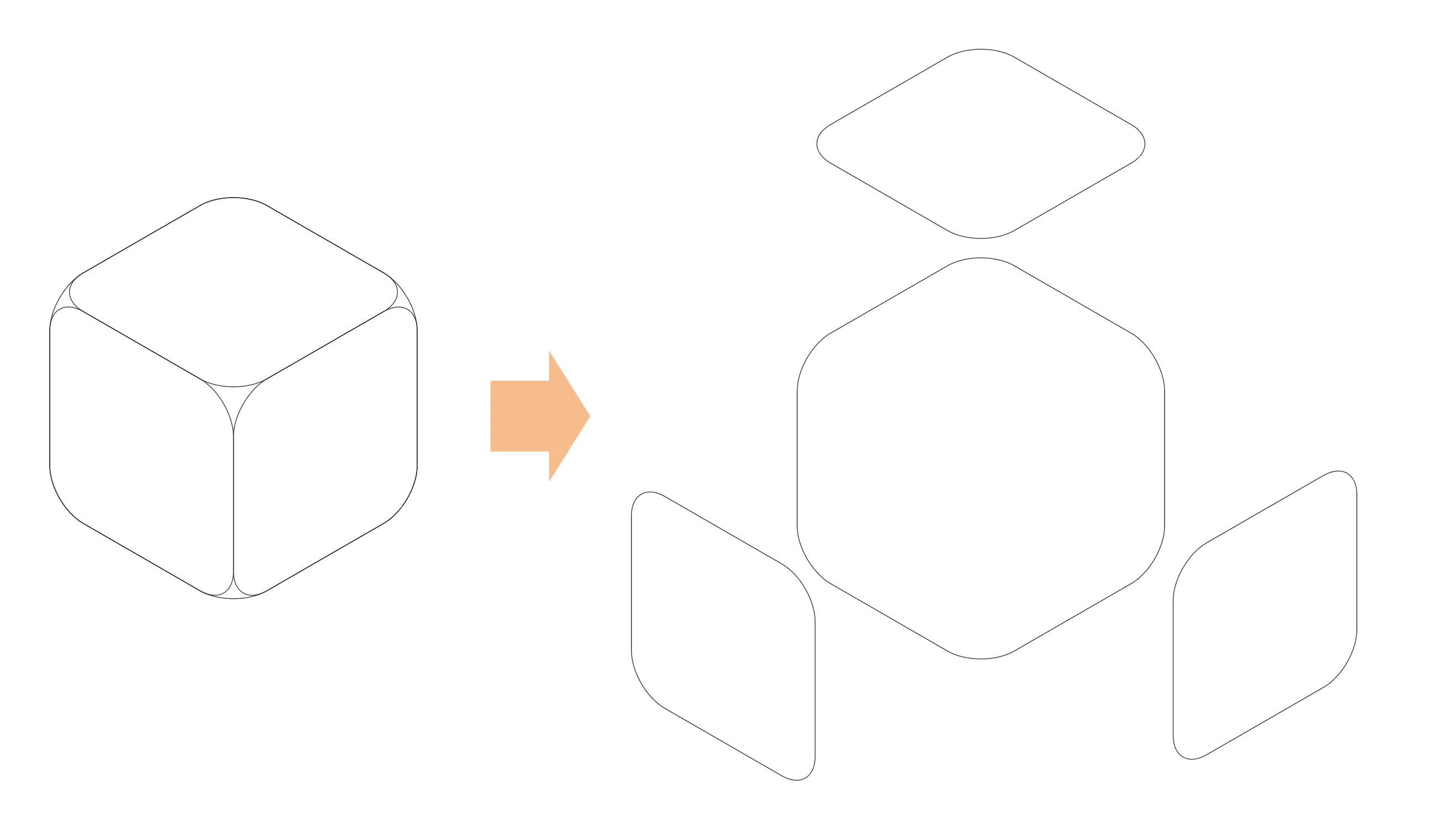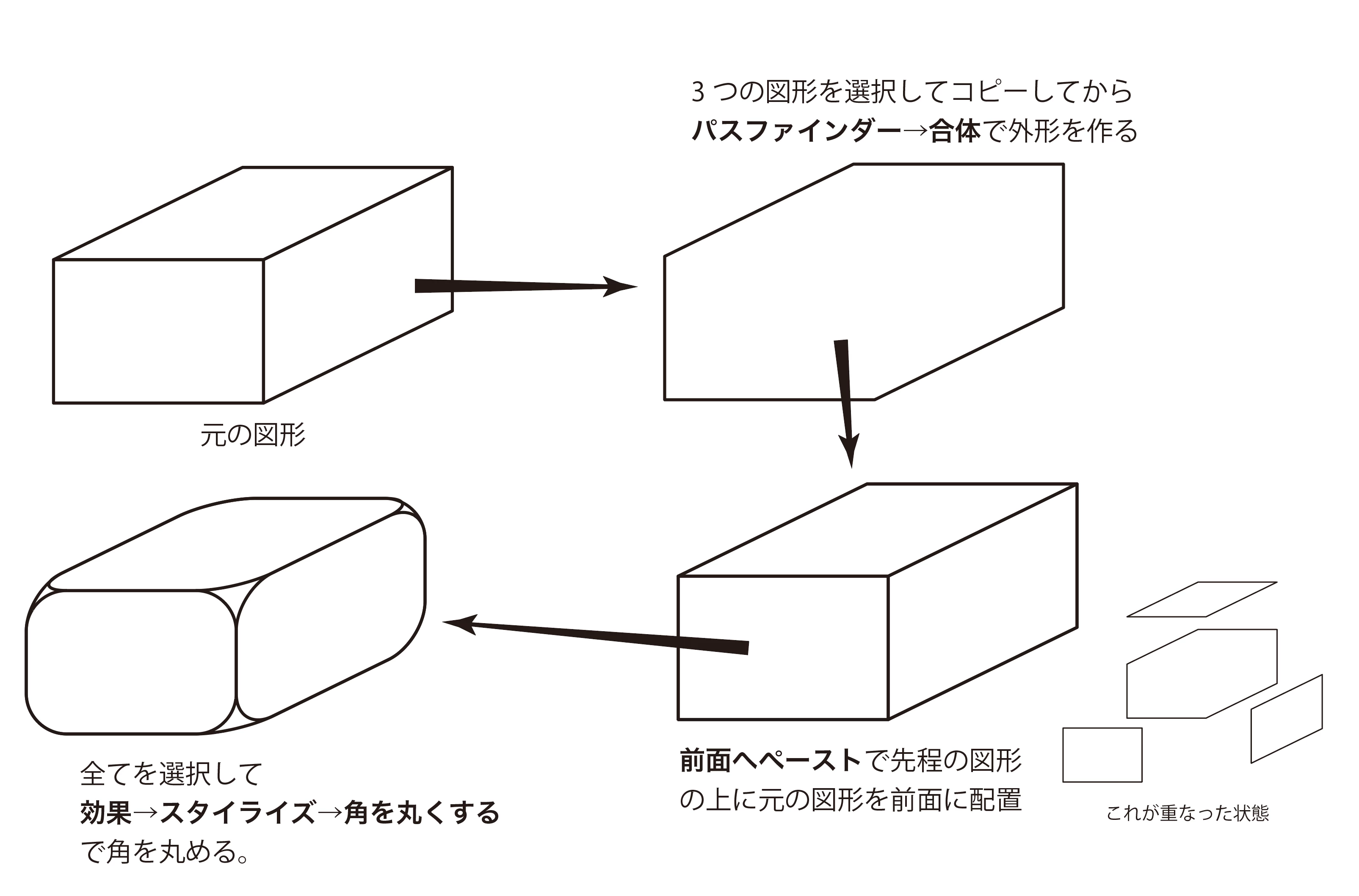 立体に見せた四角形の角を丸くしたい