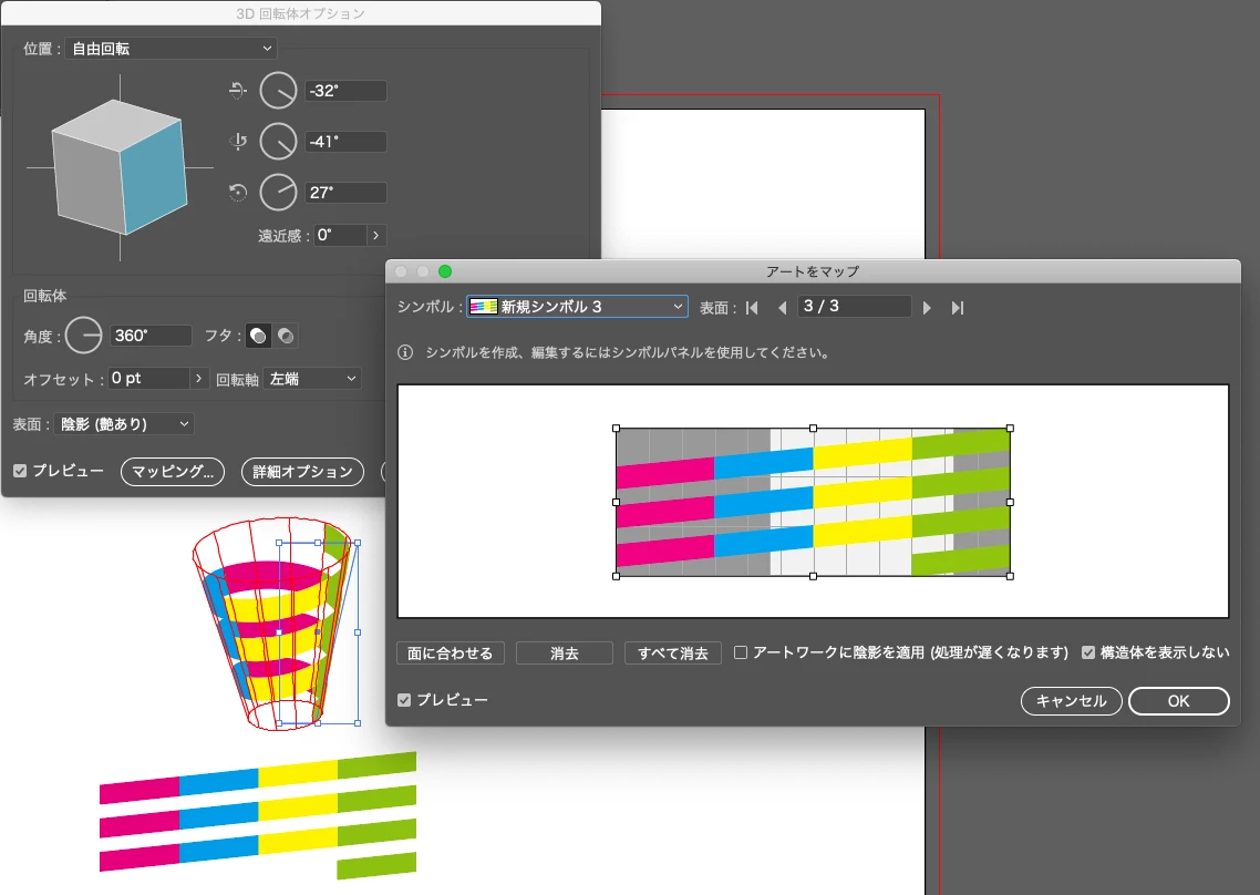 私のIllustratorのスキルとしましては、トレースなどは割と出来る方ですが、3Dに関しては全く知識がございません。現在、方法を調べつつ、試行錯誤中ですがうまくできず、パスを描いていくしかないかな、、、と思っております。