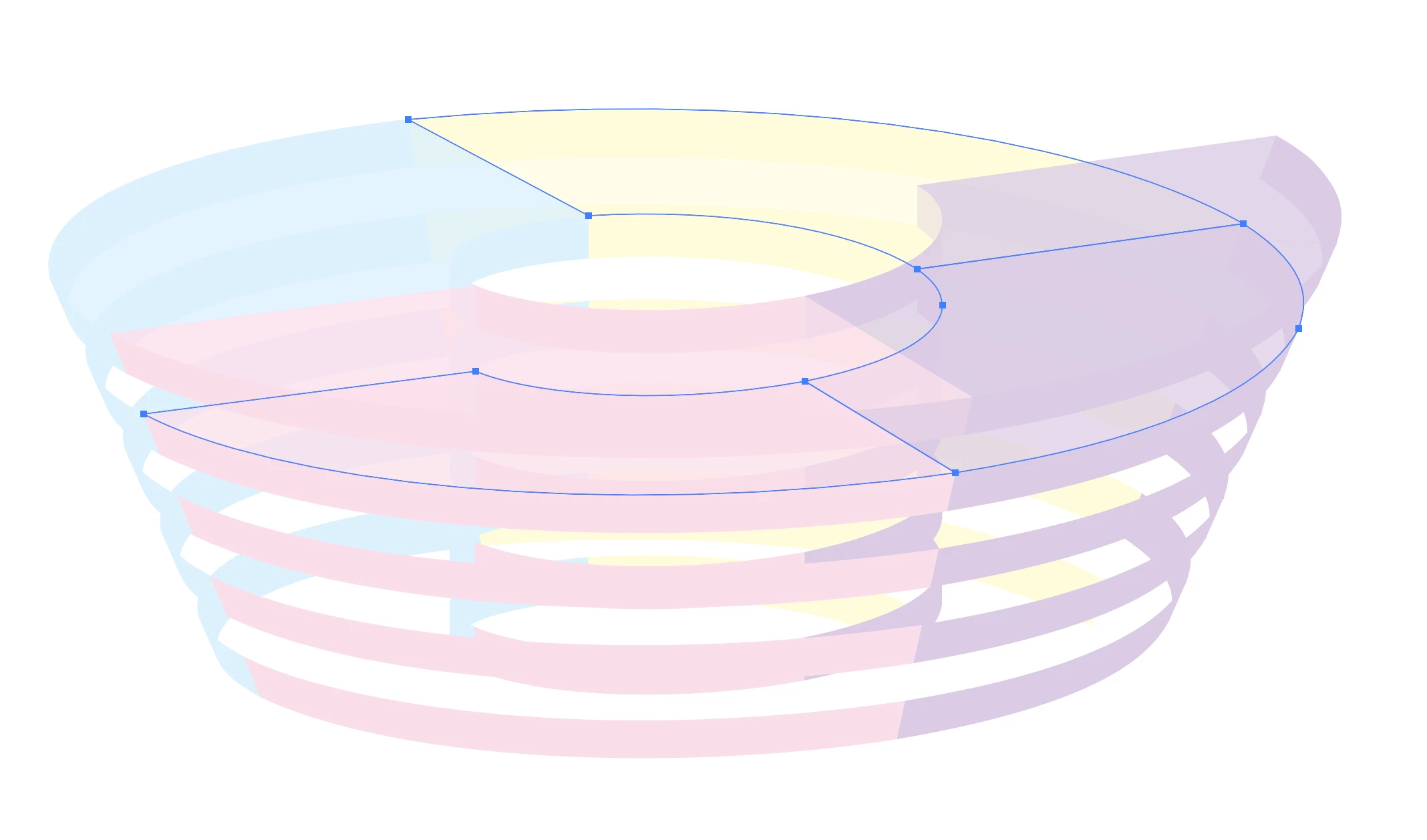 なお、目指す最終形は、参考キャプチャのように、らせんの中を色分けして区切る必要がございます。