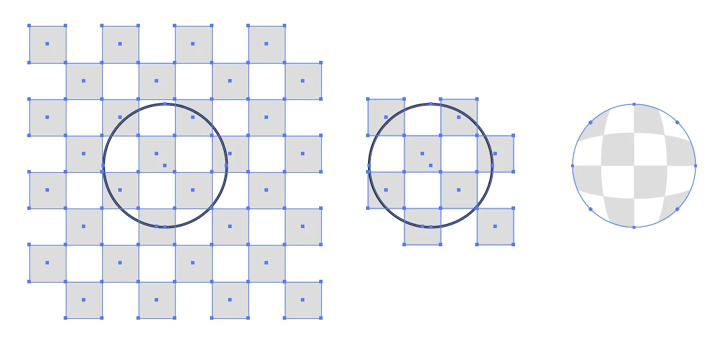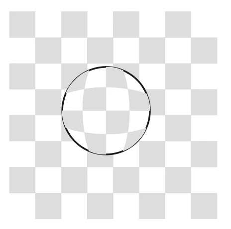 紙の上に凸レンズを置いたときのように、円形の内部のみが膨張した図形を作図したい