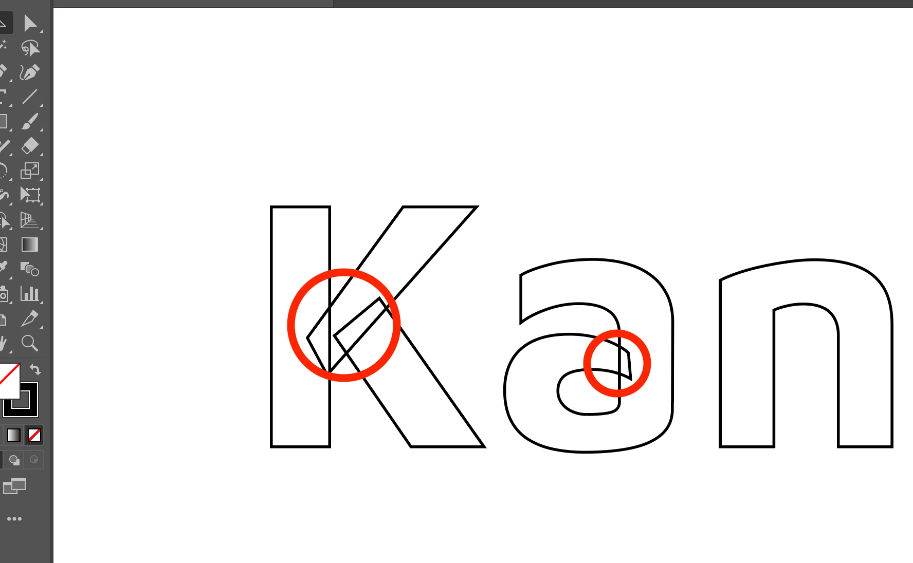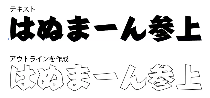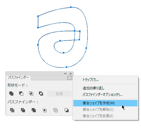 〈一般には、ここまでの状態で元から1文字ごとに複合パスになっています。通常、テキストのアウトラインは最初の投稿に添付されたKanのようにはなりません。〉