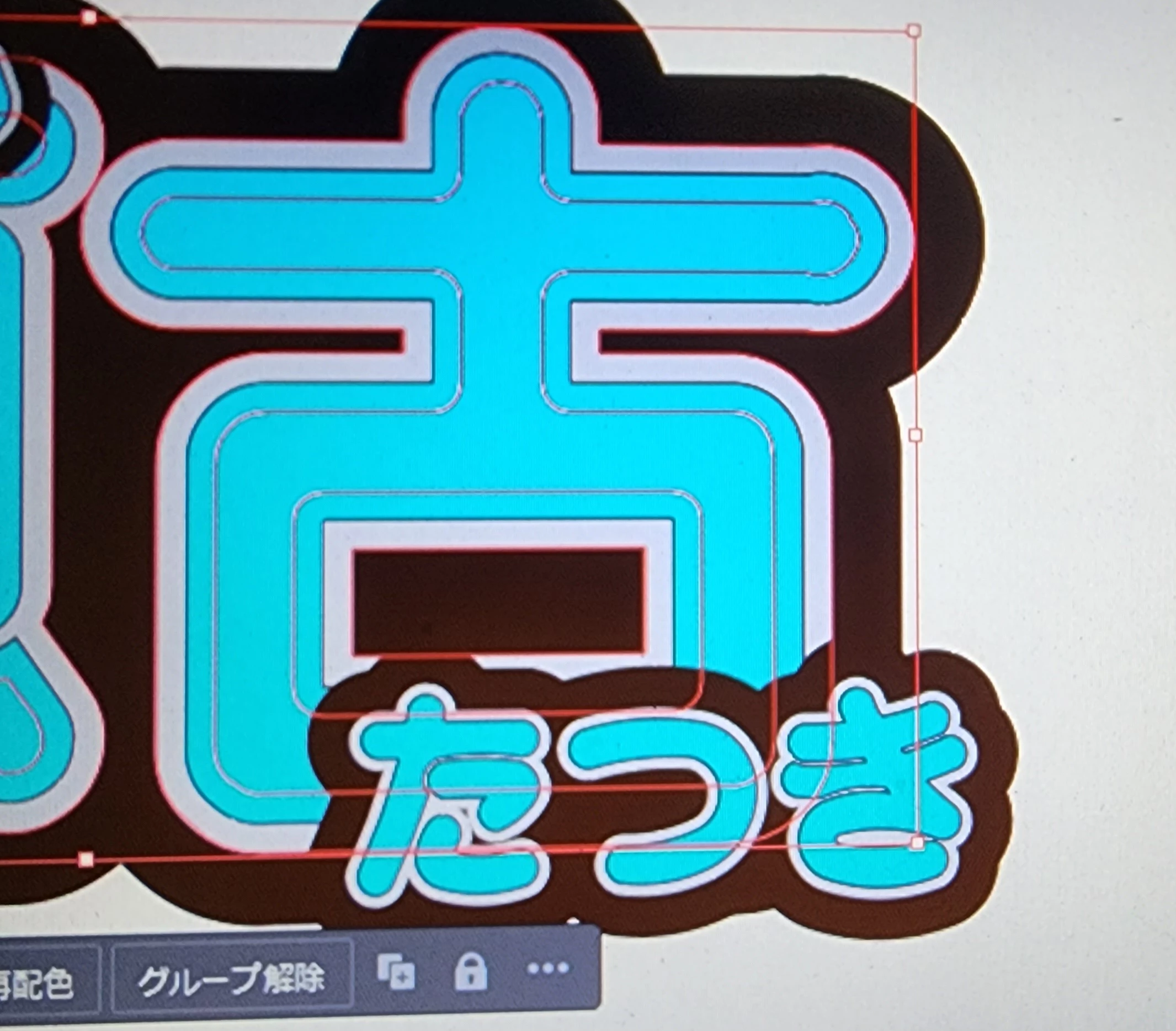 ネームボードを作成したいのですが、アピアランスにて縁どりをする際に右下文字の部分だけ外枠の太さ太くなってしまいます。