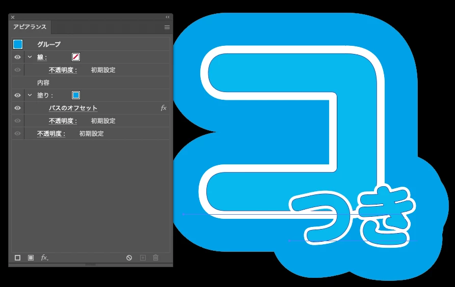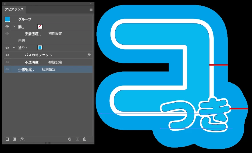 外の青フチは、グループに塗りのアピアランスを追加しました。