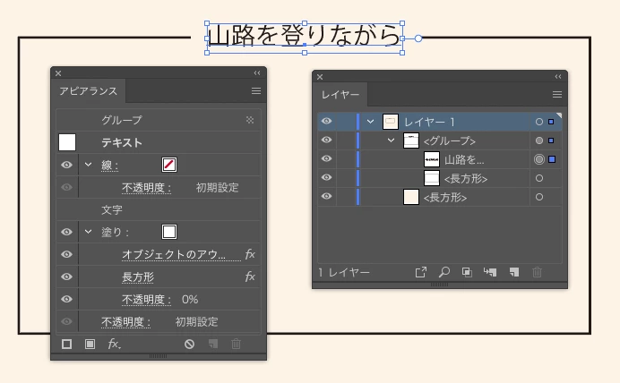 外枠とテキストの2つをグループにして、「グループの抜き」にチェック