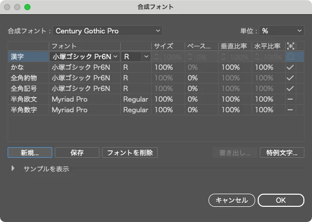 たいがいは「新ゴ+Helvetica」などわかりやすい名前ですが、決まりごとではないので紛らわしい名前をつけることも可能です。