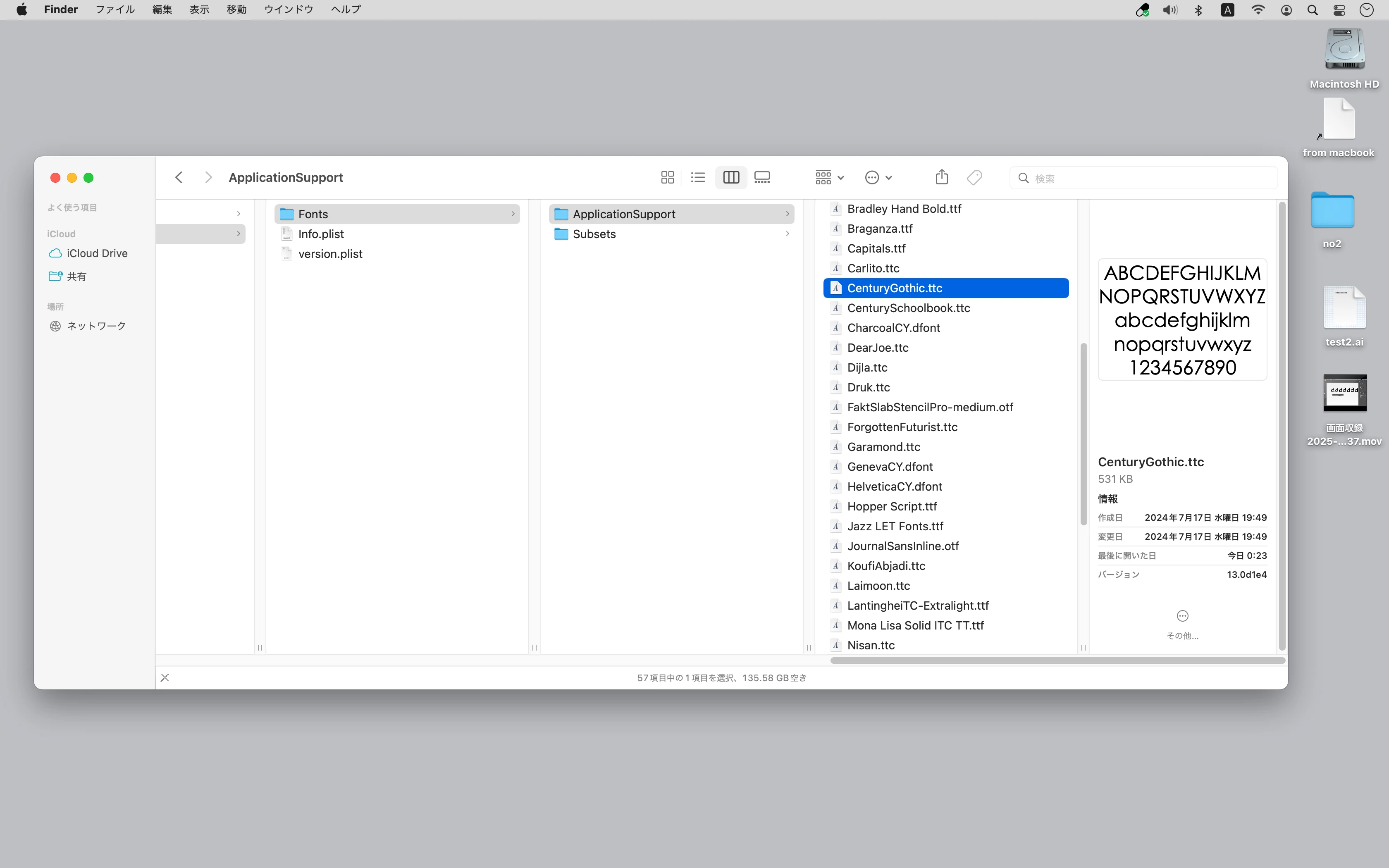 ですが、フォントに日付は、MacのOSをインストールした日付になっているので、たぶん最初からここにフォントがあったのでは?と思います。