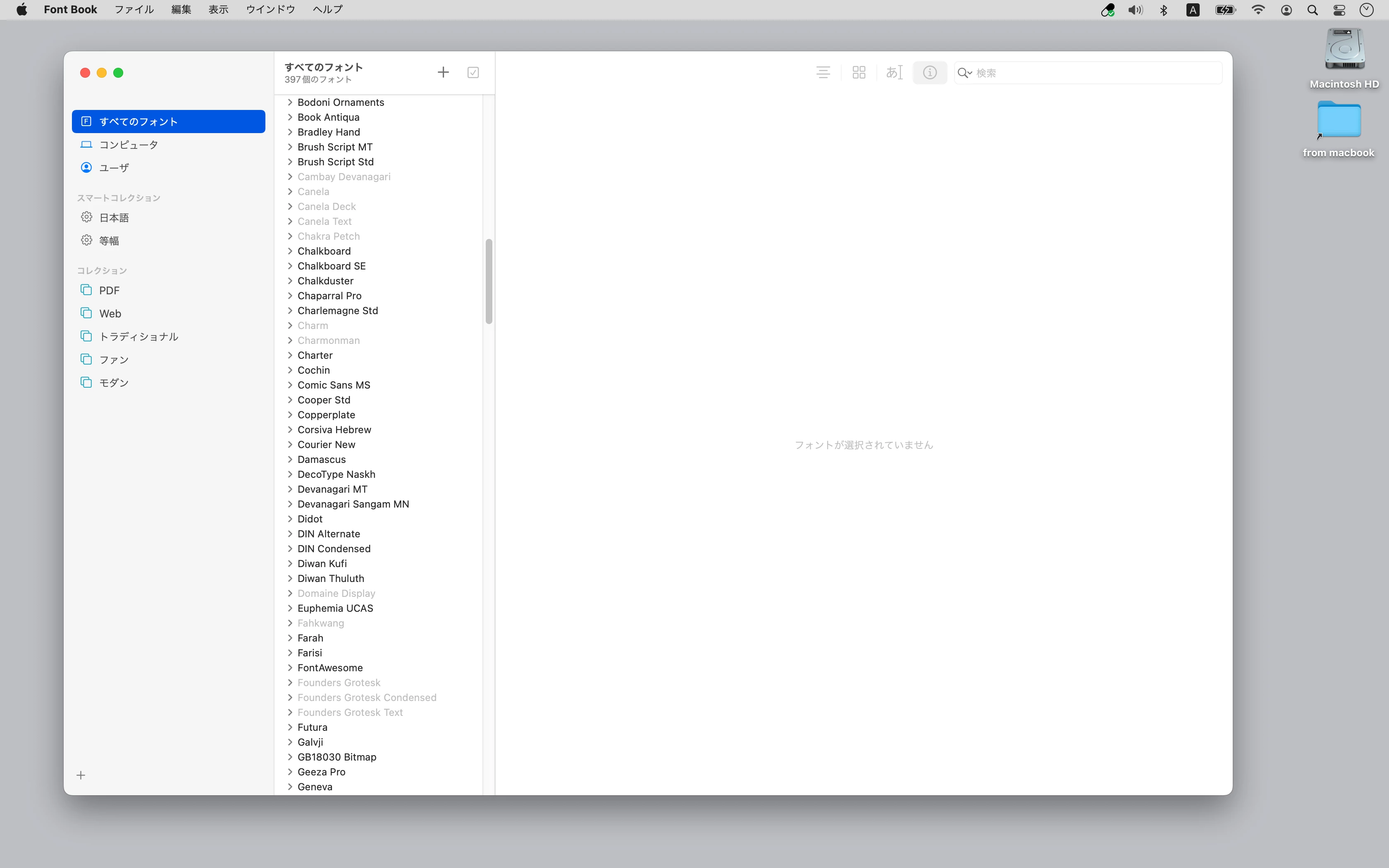 『以下のフォントは、そのフォントがすでに使われている書類や、そのフォントが名前で指定されているアプリの中でだけ利用できます。一部は、以前のバージョンの macOS や Apple 製アプリに組み込まれていた古いフォントです。』