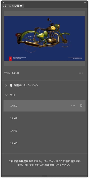 「バージョン履歴」にて保存されたバージョンを確認し、必要なバージョンに戻ることができます。