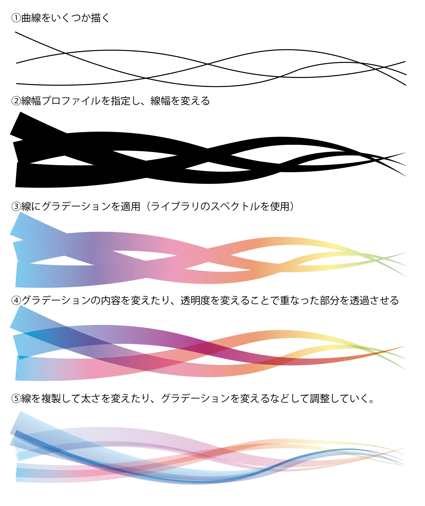 ⑤線を複製して太さを変えたり、グラデーションを変えるなどして調整していく。