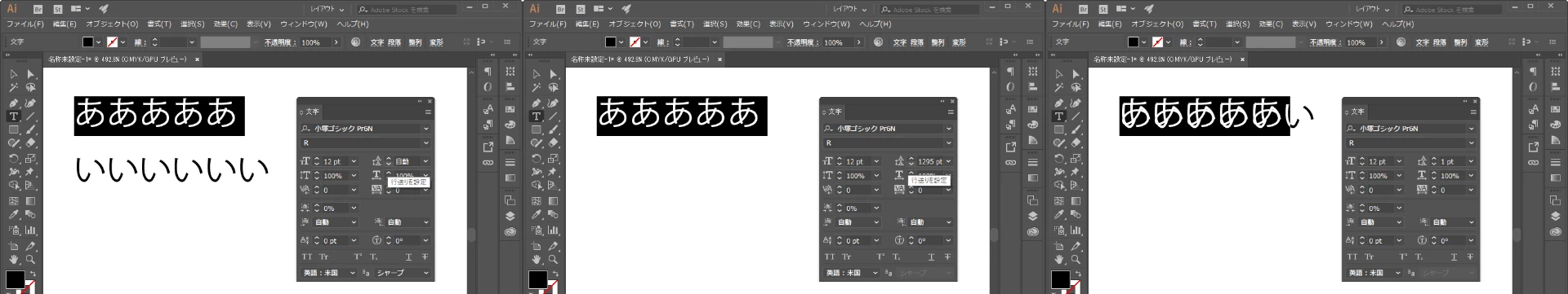 テキストを新規作成し、適当な文字を改行して2行になった状態で、行送りの設定を1pt下げると一気に1295ptになってしまいます。