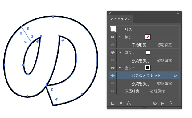 これを回避するためには、フチはアピアランスで塗りを追加して、下にある塗りに「パスのオフセット」を適用するなど。