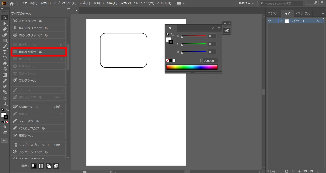 それで角丸長方形ツールが長方形ツールを長押しで出てくるようになります。