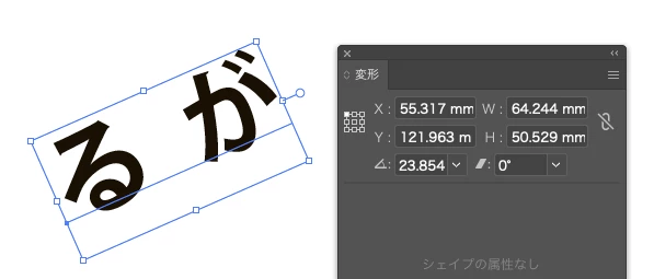 角度はつきますが変形パネルで確認すると角度が0°と表示されます。