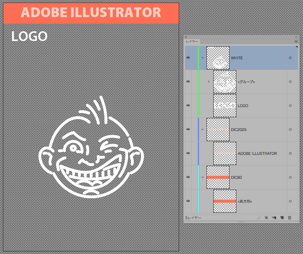 まず左上のロゴと本体のイラストは一つのレイヤーでいいでしょう。