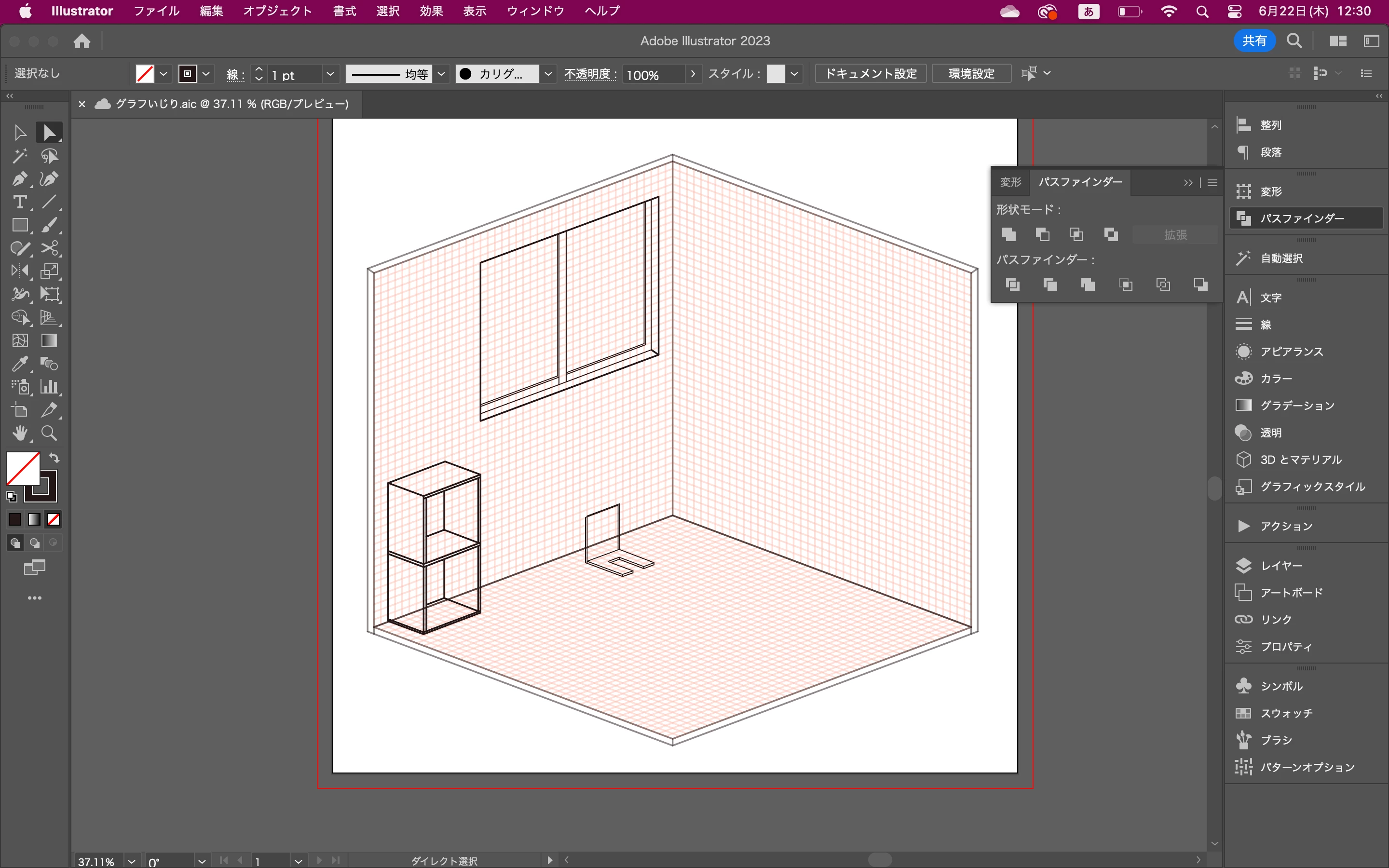 Illustratorの遠近グリッドは一点〜三点の透視法(遠くに行くほどちっちゃくなっちゃうやつ)なので、残念ですが今回の用途では役に立てられません。