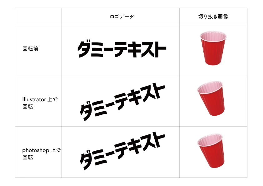 また、「画像の回転」をIllustrator上で行うと荒れが大きく、Photoshop上で行うと荒れが小さくなりました。