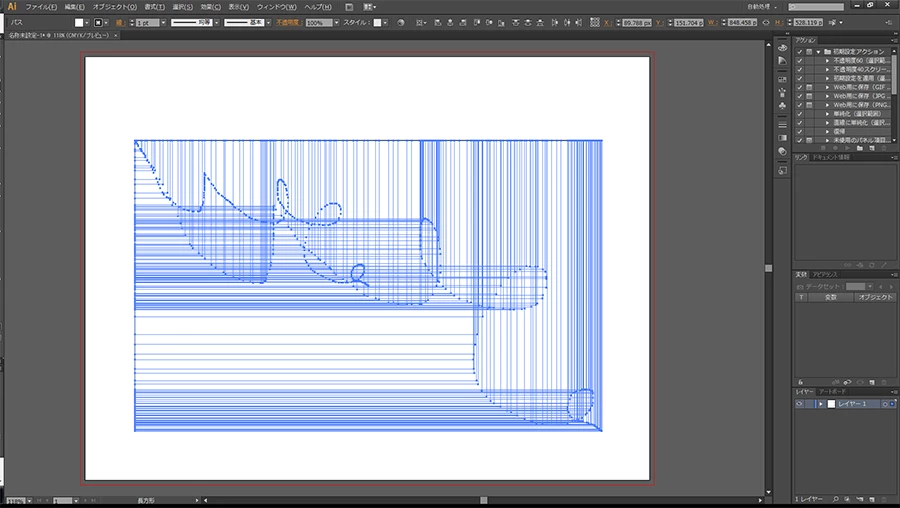 長方形ツールなどの図形ツールでドラッグすると軌跡に沿って大量の図形が出来る